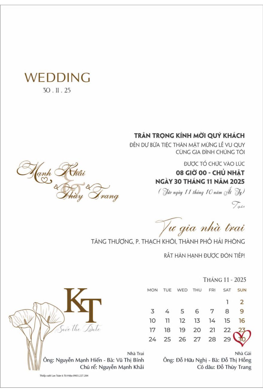 Sự góp mặt của mọi người là niềm vinh hạnh của hai gia đình chúng tôi!