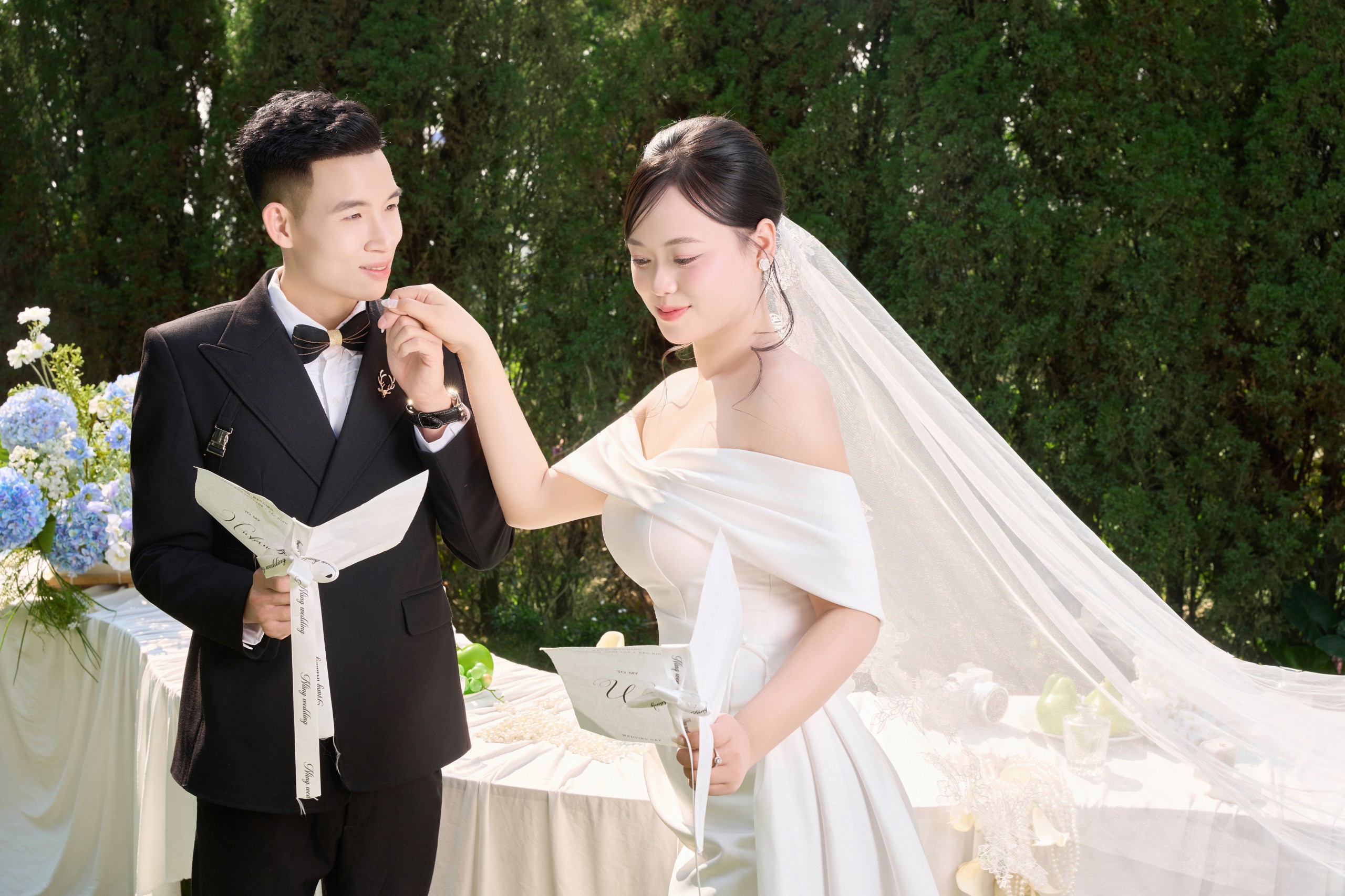 chú rể chân thành, ấm áp , luôn âm thầm và che trở cho vợ mình.